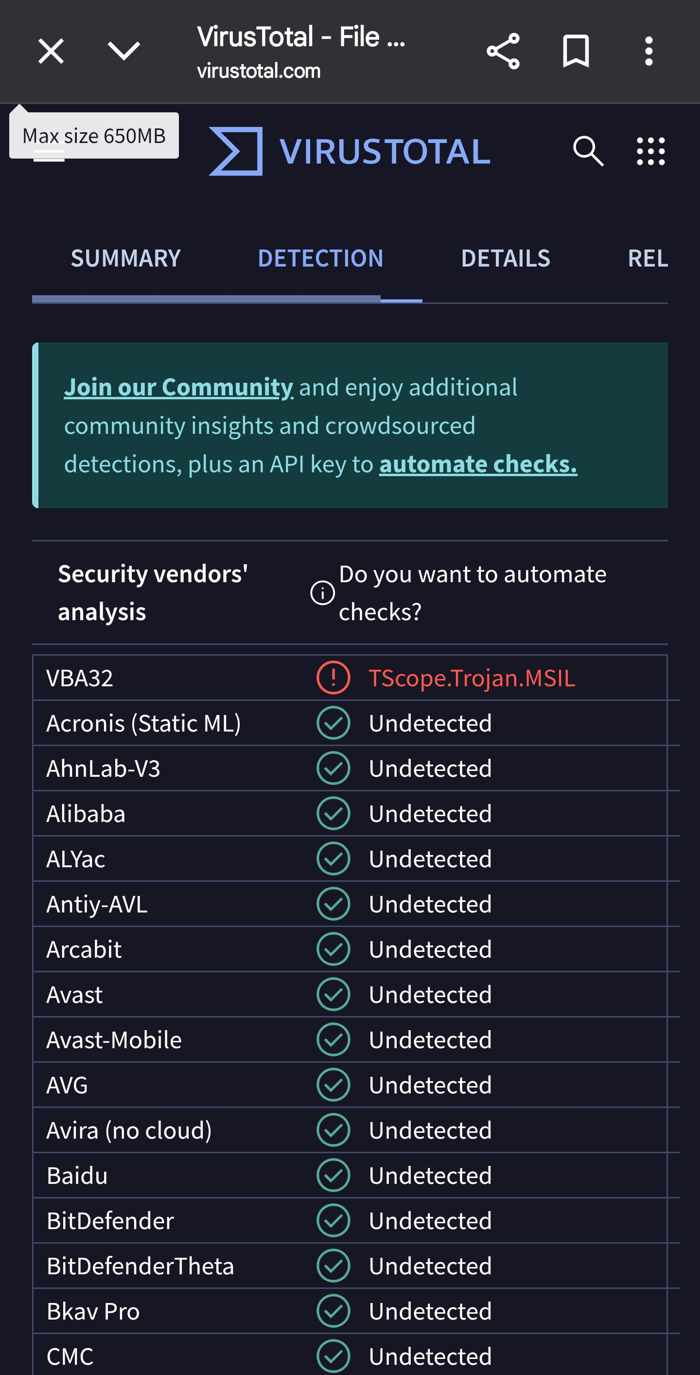 that is called a false positive i'm pretty sure every unity game trips at least one virustotal scanner (image is of the official baldi's basic you can get to prove a point) and actually that specific one is a pretty common false positive if you look it up