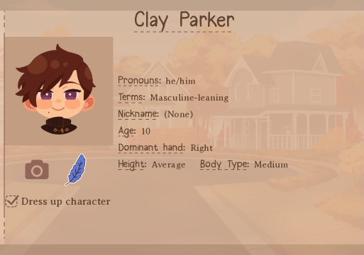 Clay is ambivert, he likes to be alone at home, doesn't really like having to know a lot of people, but he's sociable. It's complicated, he has natural purple eyes, he is straight in step 1 and becomes Bisexual in step 2, he also becomes more taller in step 2 (i didn't play his step 2 yet)