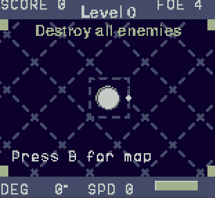 Interesting idea, but I don't think it works that well with such a tiny viewport, even with the mini map I felt lost on how to navigate through it to find the enemies. Some of the controls are strange, and the way the POW level works doesn't make much sense, you just waste time by doing a trial and error to set it to 10. It would be better to simply let the player to adjust it manually or have it to be always cycling and the player to timing when to press to shoot the ball (like how Lunar Pool on NES does).
