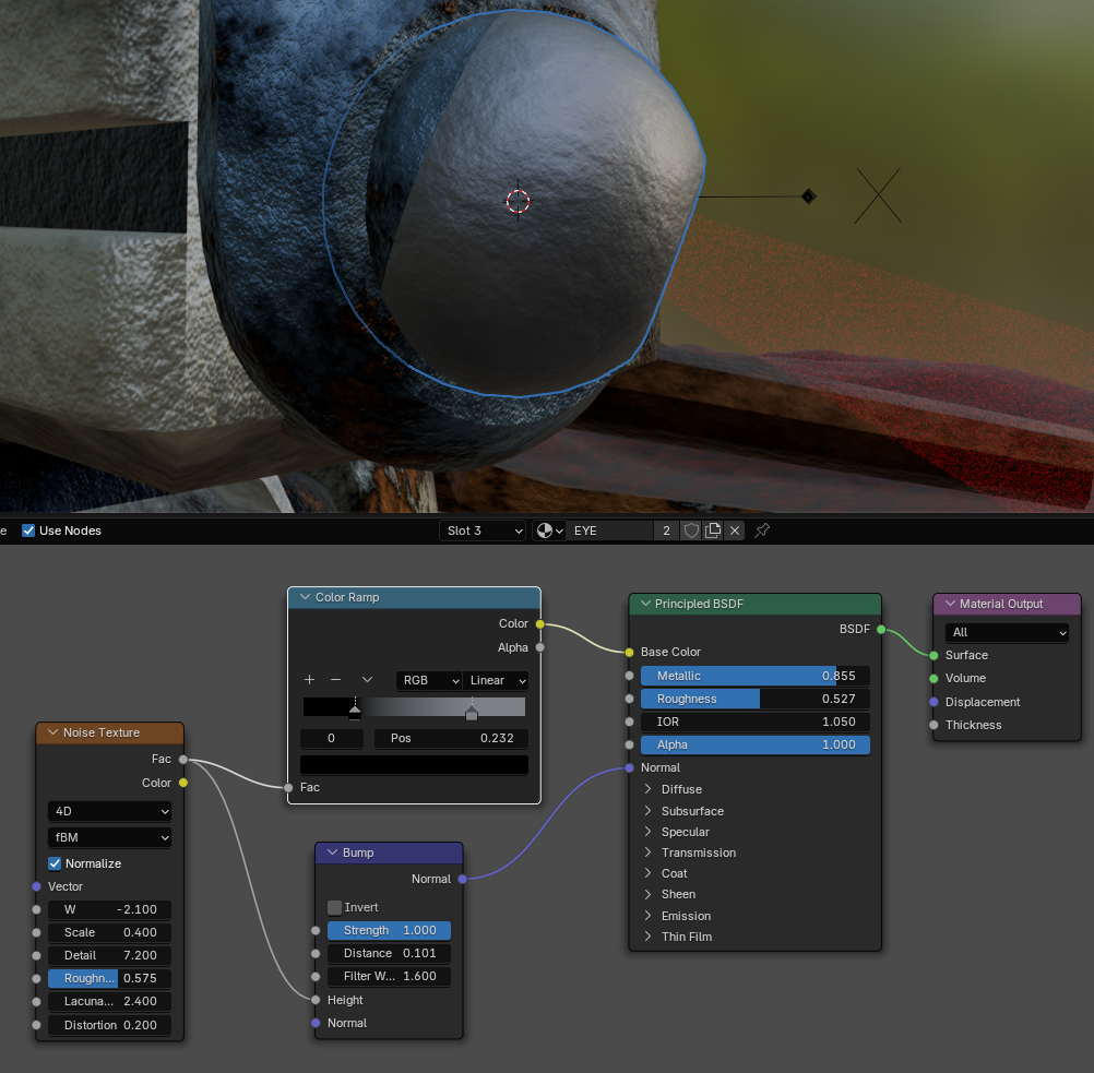 Thank you! And sure thing, here’s the material I used. It’s a combination of Noise Texture, Color Ramp, and Bump. I applied it to all objects, just tweaking it to fit each one.