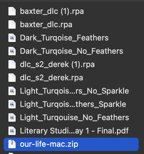 Glad you were able to figure that out! Fortunately, the second issue is also a simple fix. You actually need to add the DLC out of game, rather than in-game. First, local the DLC file, which should be called "derek_dlc.rpa". Go to where you put the whole folder containing the game, and look inside there for the "game" folder. You want to but the DLC file directly into that folder. You'll know it worked by booting up the game and clicking the "DLC Info" button in to top left corner. It should show the Derek story DL C as "Installed". If you need more help, just let me know, and we hope you enjoy the story!