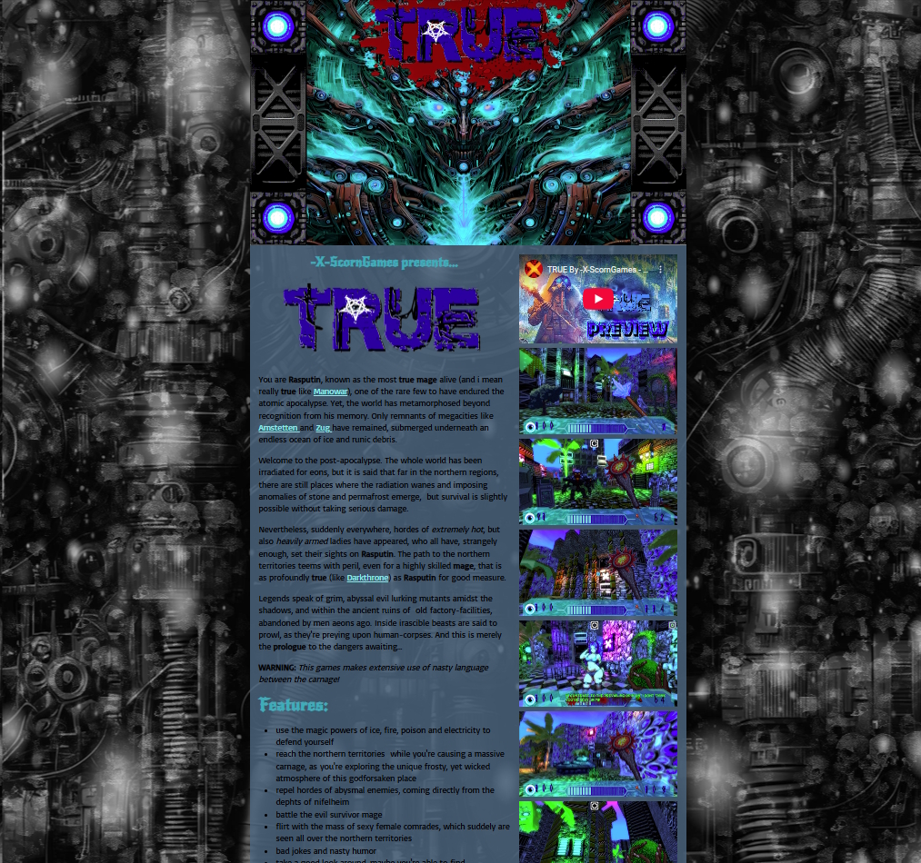 AS of unknown reasons i have a screenshot of the already prpaired itch site of the game which is Called TRUE
