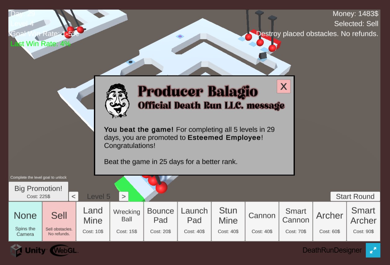 That's great, thanks for playing! The best promotion is for beating the game in 15 days or less. This is quite a tricky puzzle to figure out and even took me quite a while as the developer to be able to do it.