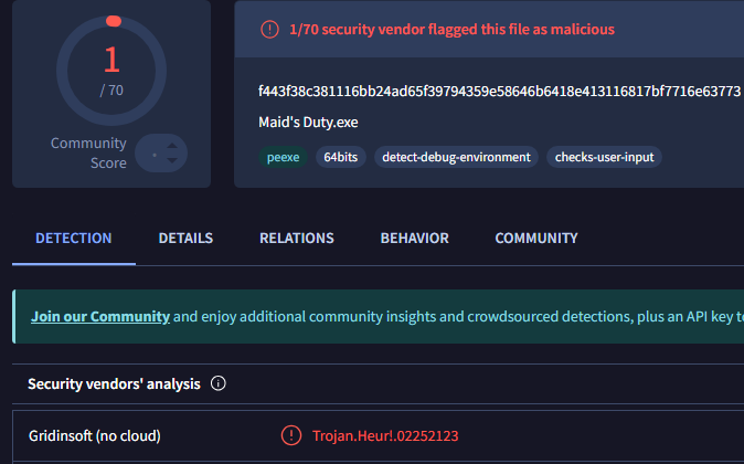 It's a false positive, triggers more sensitive antiviruses. Here's explanation from engine developers: