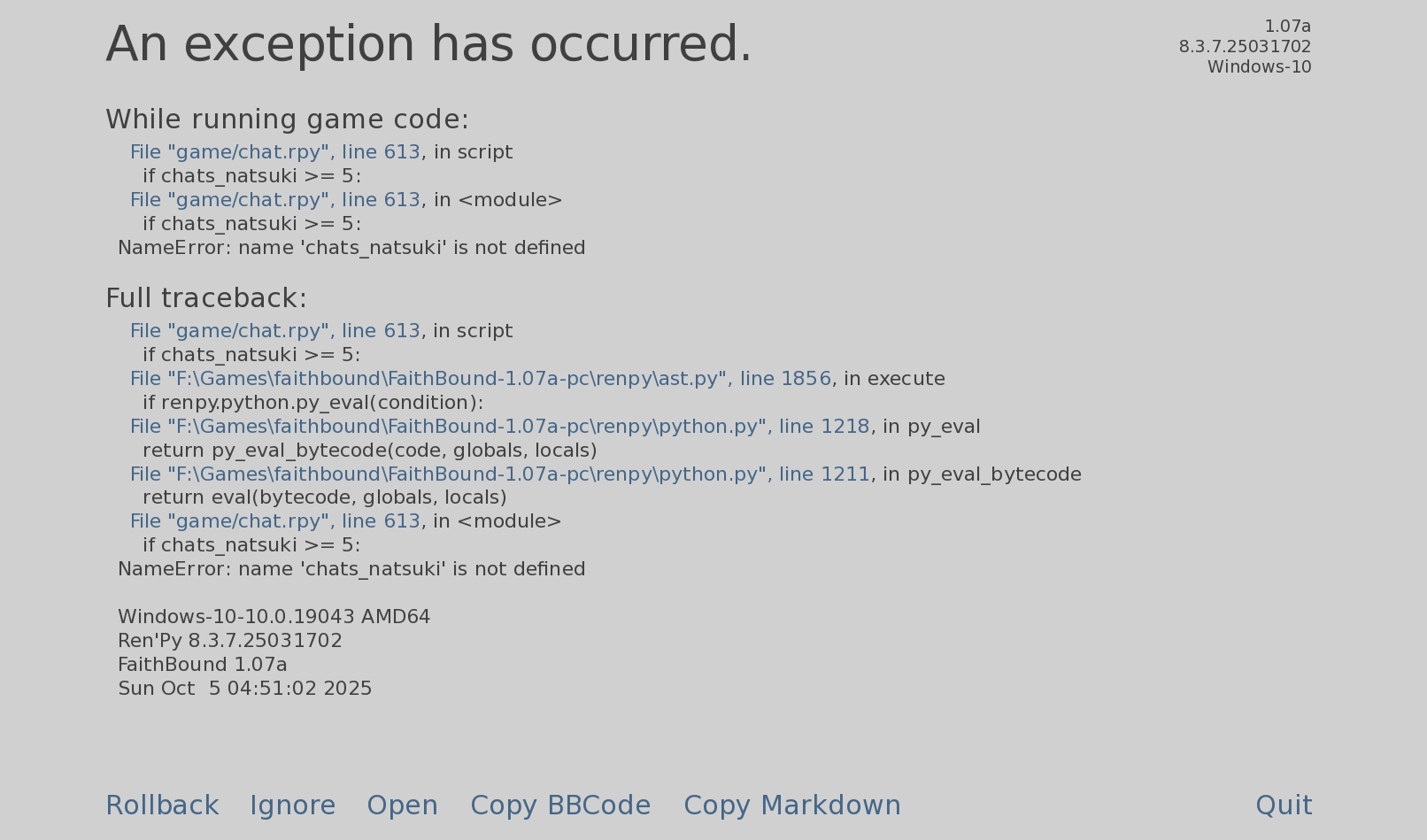 Hi! You're playing on a previous version (1.07a). I recommend downloading the latest version (1.08a), where the bug has already been fixed (and it also adds more content). Thanks anyway for reporting the bug!
