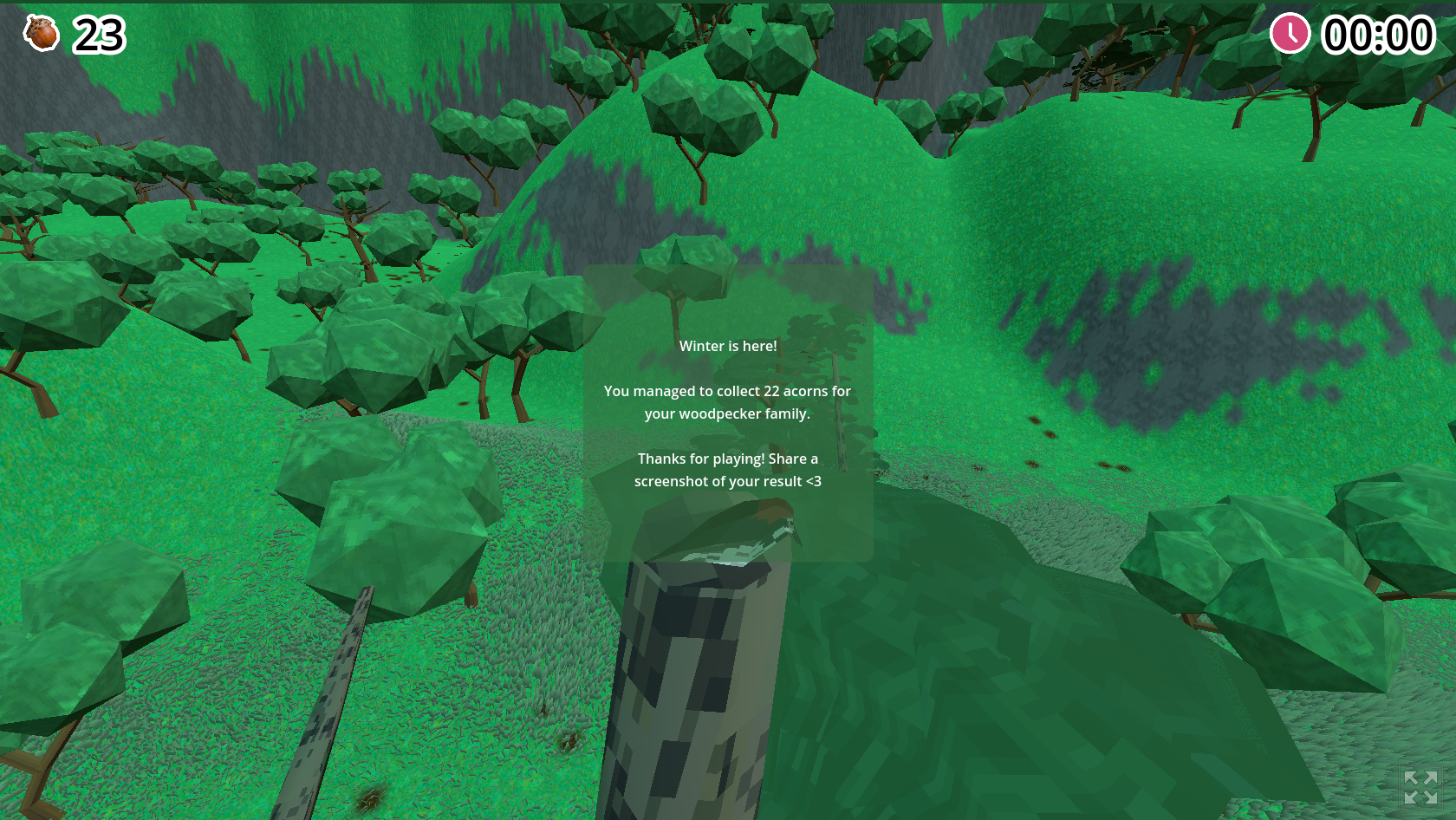 I found it actually quite difficult to pick up acorns (and to find them, but once you know what to look for it’s alright. This was my second playtrough.), even while holding shift. Because when you sit on a branch near a couple of acrons, they are out of reach most of the time causing you to akwardly hover near them and spamming e or lmb and hope for the best. But it was kinda fun just flying around when you’re not going for the acorns.