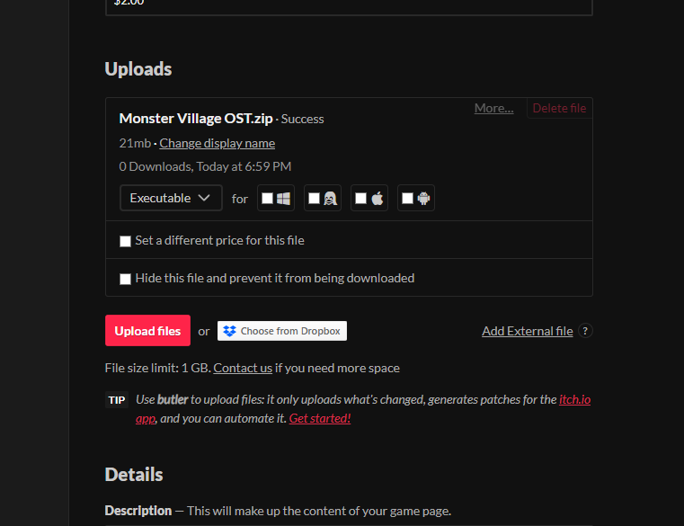 When you go to upload your files i should say what platform is it for and you can select more than one platform for the same file and (note the zip in this image was for example purposes only)