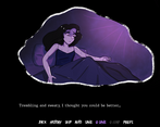 Thank you so much for playing my game! This one was definitely a lot to place in a clear timeline, y the way I am sorry about the voice acted lines (still fixing that issue) and no it doesn't glorify the gore when Luna reads it! This is just the narrator questioning and manipulating her, also a representation of her dark thoughts in her mind. The main goal is to overcome the fear luna has of the outside world and not let it control her, because as you could see she's paranoid and terrified of the world. The chaotic sequence and the way it loops is just a way to show how Luna is in this "never" ending cycle, which can be broken once we make a different choice. Since this is a demo I tried to make it as short as possible :3 even with these points I do hope you enjoyed part of it!! I will be playing your game soon too!