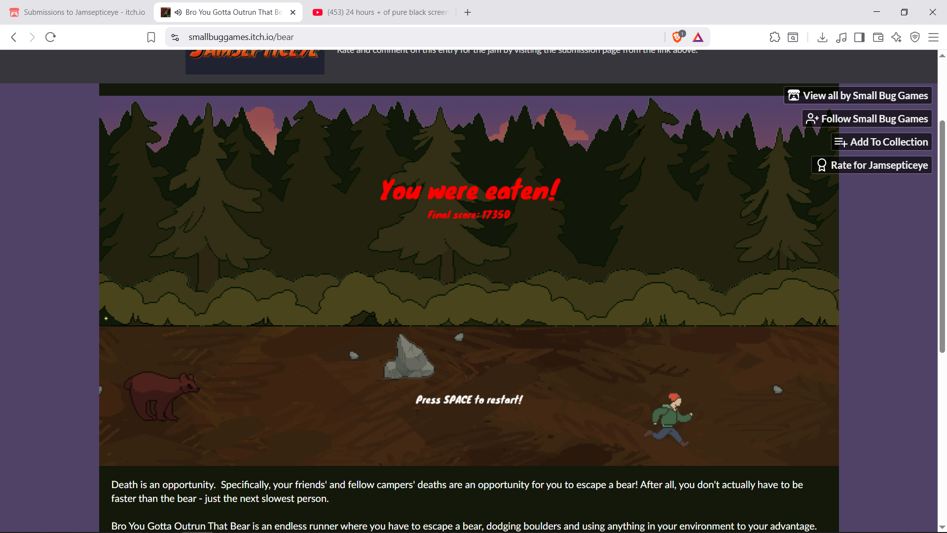 I wish there was more challenge though, arcade games are know for ramping up difficulty the more you go, but it feels like the same difficulty. Overall nice submission