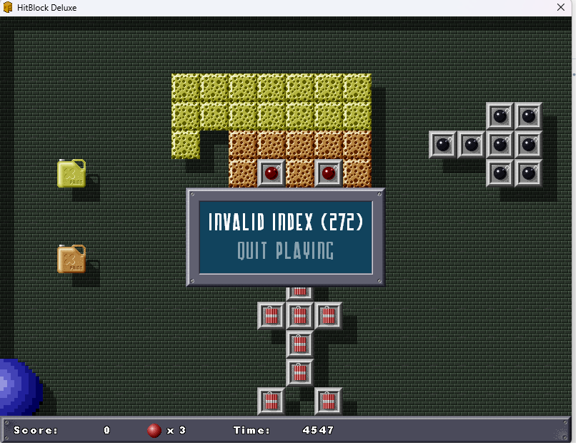 as of newest version, choosing "restart level" on last life now results in this (maybe it would also make sense to rename "restart level" to "abort ball" or something)