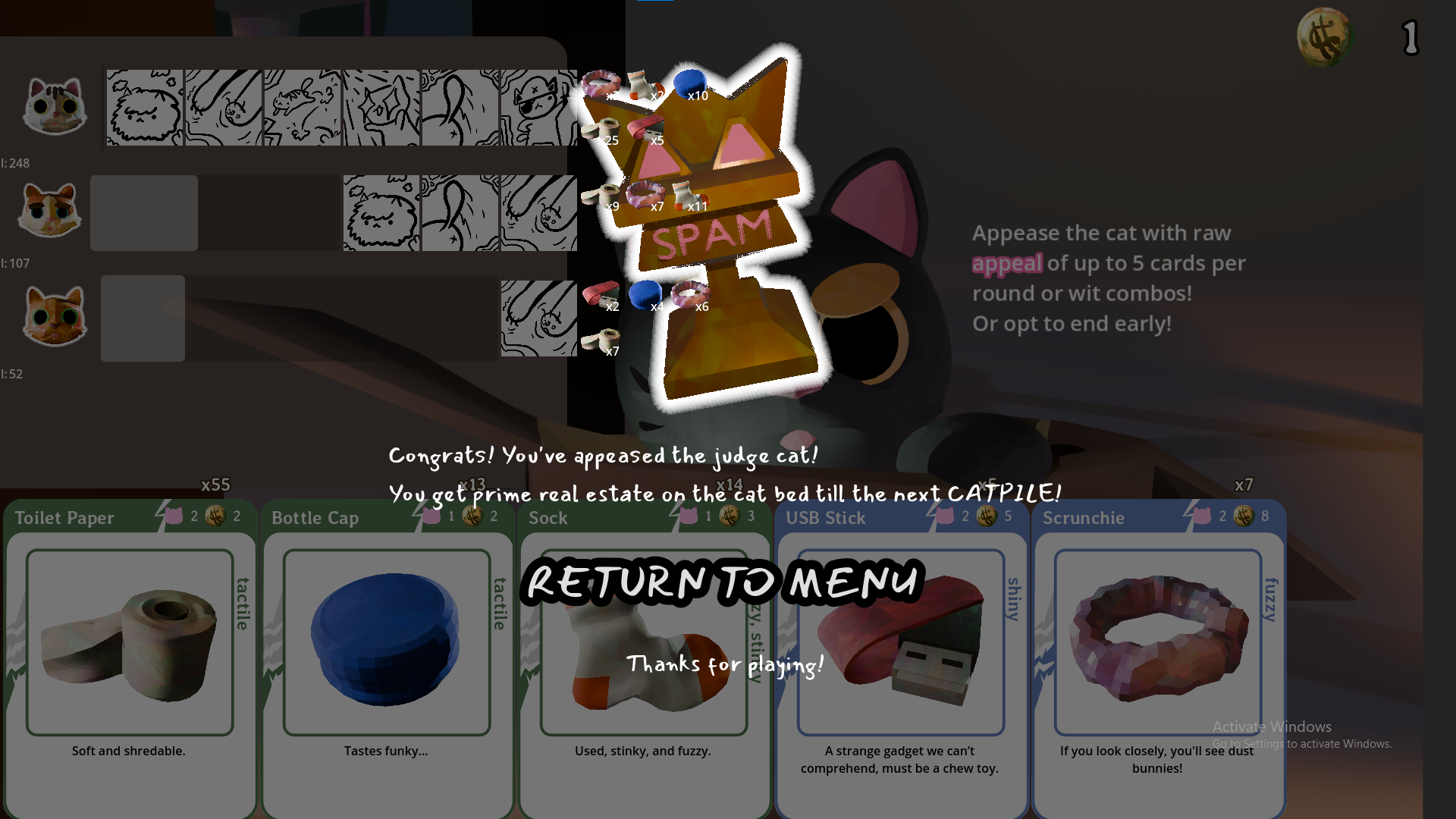 I absolutely adore the art style! The idea behind the gameplay is definitely solid, but I found it kind of boring in its current state. There is also an issue where if you return to main menu, nothing resets so I was able to achieve a total appease of 248 and 55 toilet papers: