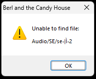 EDIT: I also found out that the game tries to find a file named "se-|ì-2", which doesn't exist. I think you should rename the files with the squares in them so they don't use symbols like "|" or letters with accents like "ì".