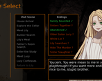 This is a really cool game! I appreciate that it was especially forgiving when it came to restarting or checking other routes too. It's a smart feature to offer to rollback from the screen, and save some time based on how I think most players are playing a visual novel with high stakes like this (reloading saves and checking what's on the other side of big choices).