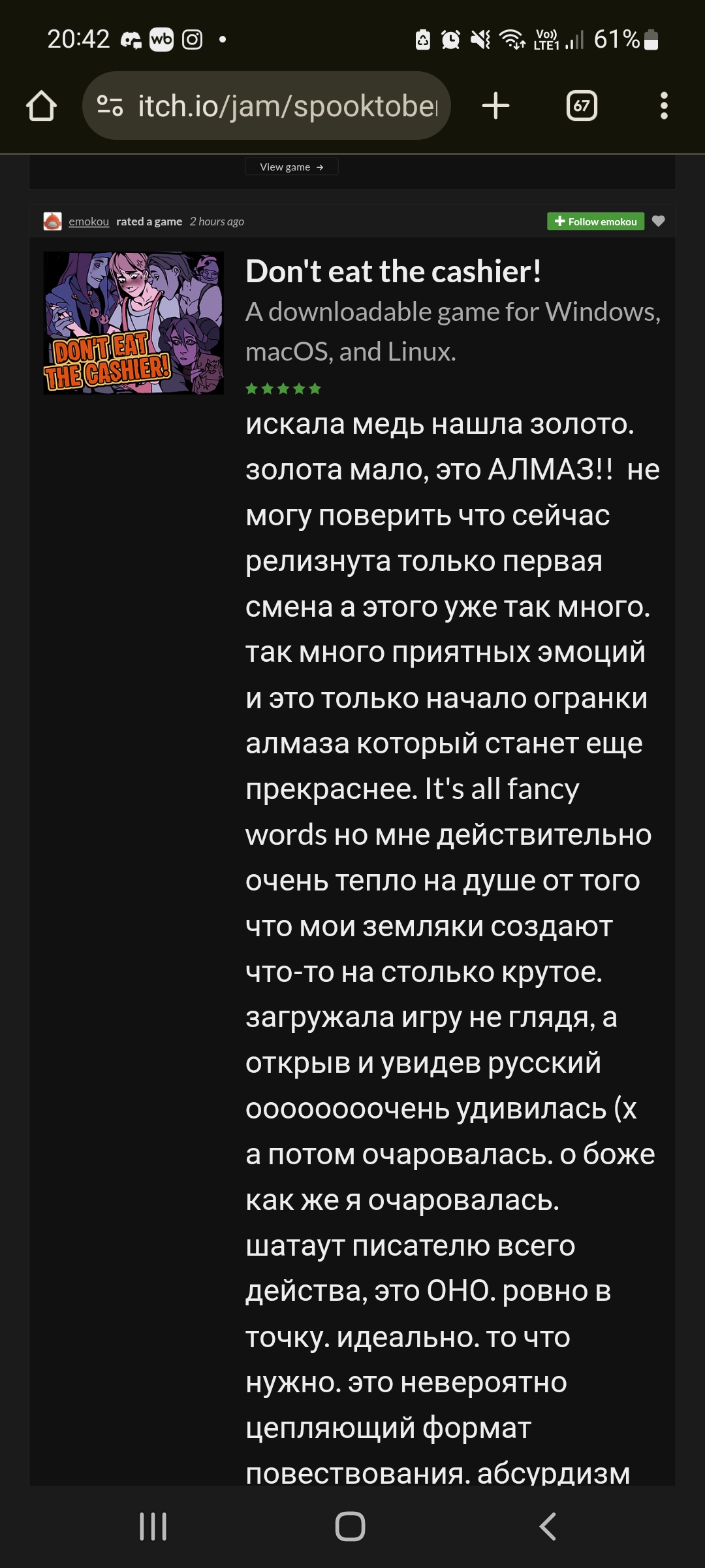 Ааа простите, мы не можем ответить на этот отзыв там но нам очень хочется, поэтому остаётся писать это только здесь спасибо вам огромное!!! Надеюсь вы это увидете, и визуалом и сюжетом одновременно занимались два человека и нам обеим безумно приятно было это читать ❤️❤️❤️❤️❤️❤️❤️❤️ Вы так здорово уловили весь посыл и все тонкости и все все, спасибо вам большое, это так безумно приятно 🥹🥹♥️♥️