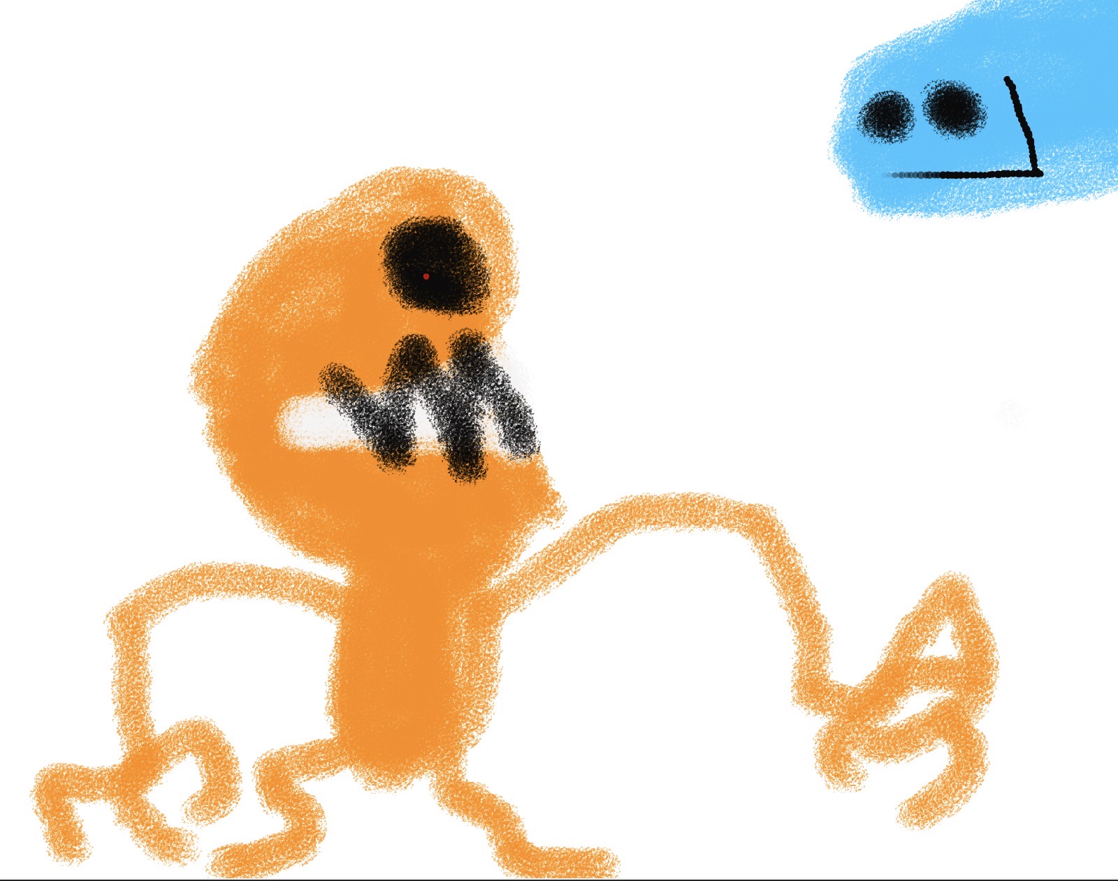 chimpy is having a break I made clinky bleed out and I made it delayed because of chunky was massive so I put in his arm and leg his leg is at the top corner next? (Fangames optional)
