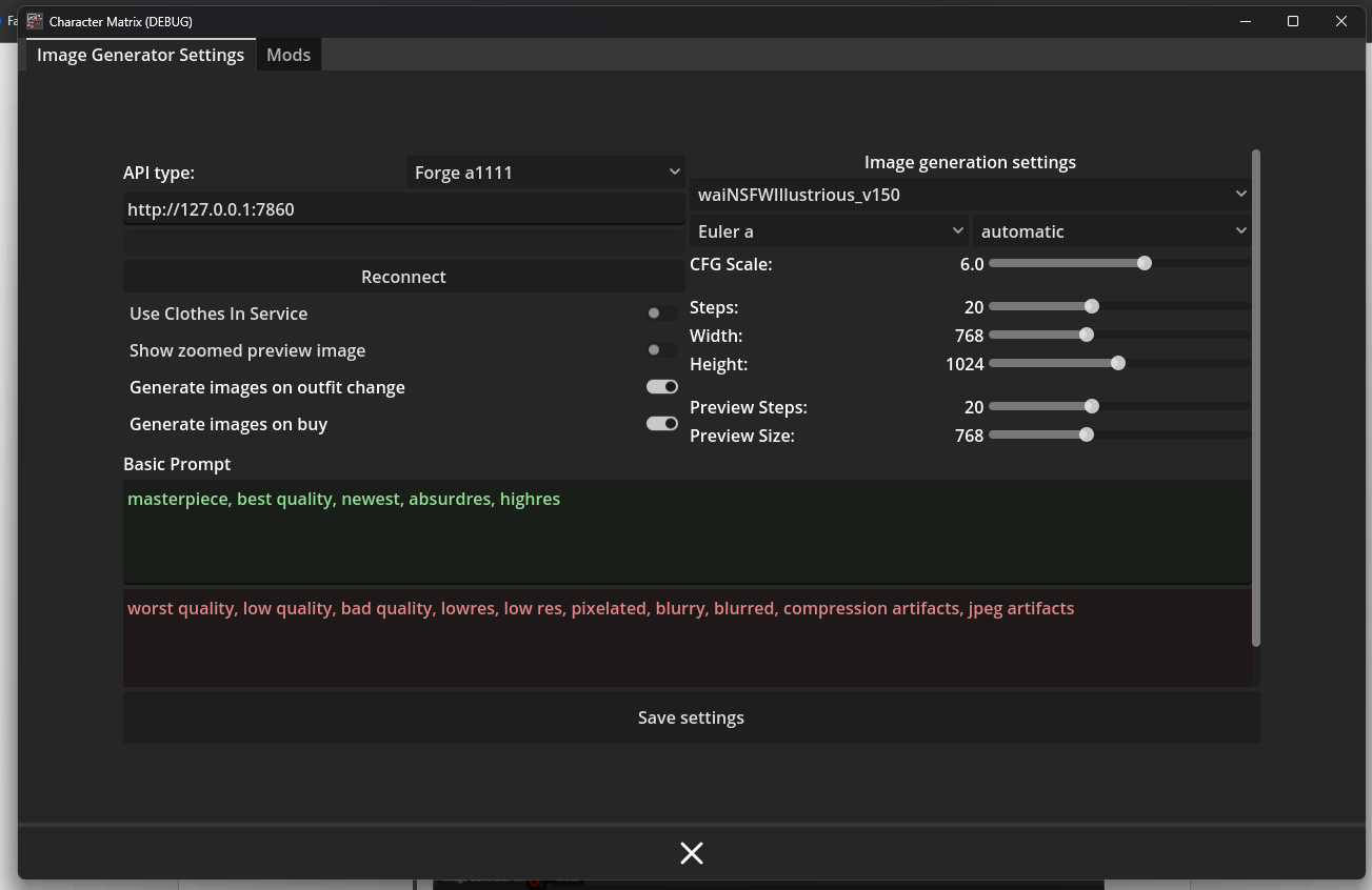 1. After launching Comfy, start the game and immediately go to the settings. Set the appropriate API type, in this case Comfy.