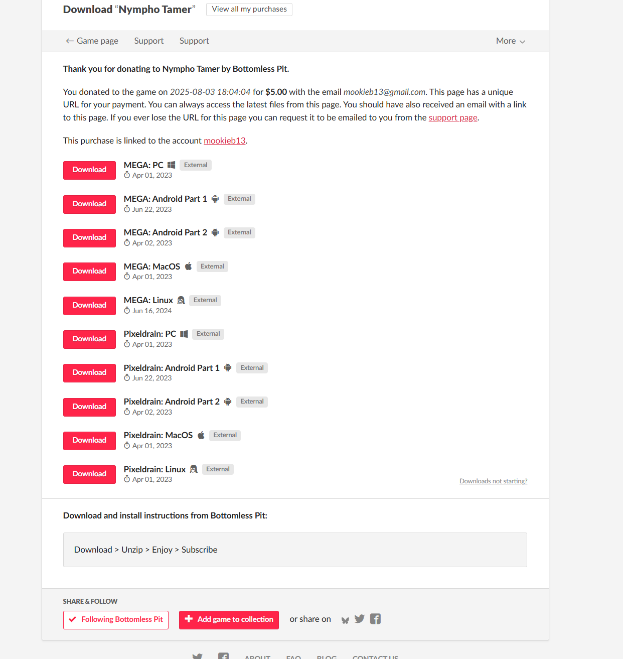 I am unable to get a current download from the link page I previously paid for. If I click on the regular download now, the current version is there, but it's asking me to pay again.