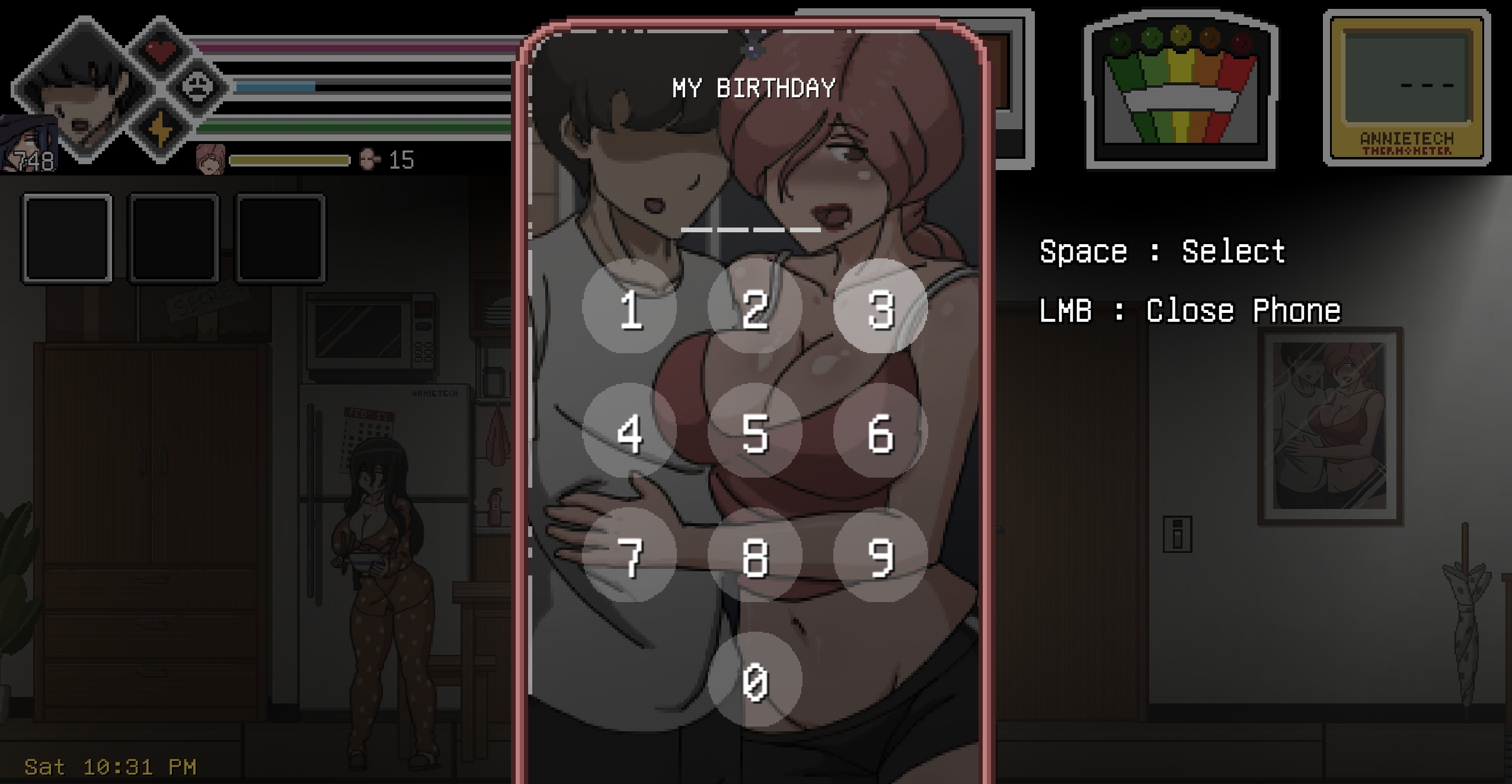 Momoko phone is change password, not a bug. clue: She age has increased by 1 year.