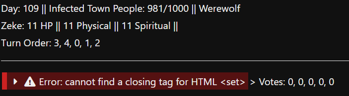 I got close to the end of a werewolf run and I got this error and infected residents stop rising.