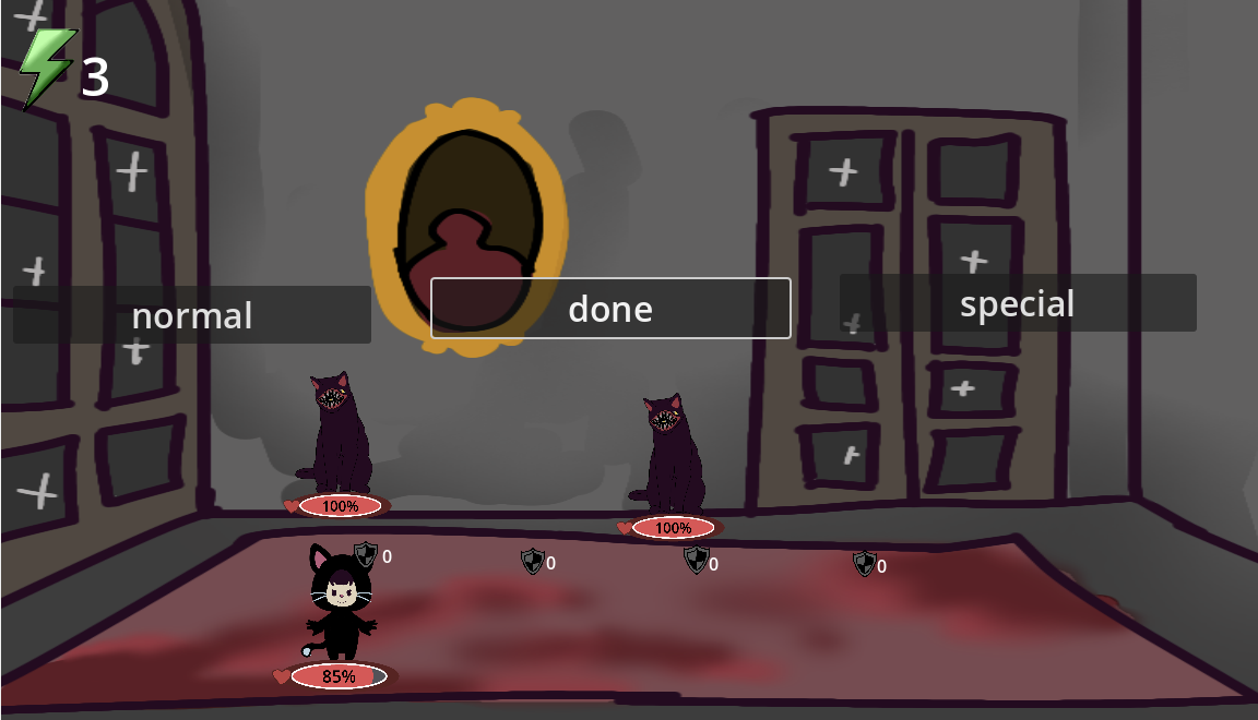 This game is super cute! However, I got stuck in the house and was able to defeat one cat by spam clicking but clicking the buttons doesn't seem to do anything? I'm not sure how to fight the other two cats!