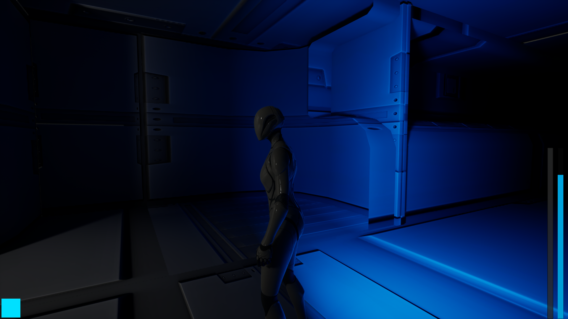 I had a few more 'juicy' elements planned for the mechanics and visuals, but didn't quite hit all the features on my list. Originally, the plan was to have the player model with built-in lights on their suit that change when you equip tools.
