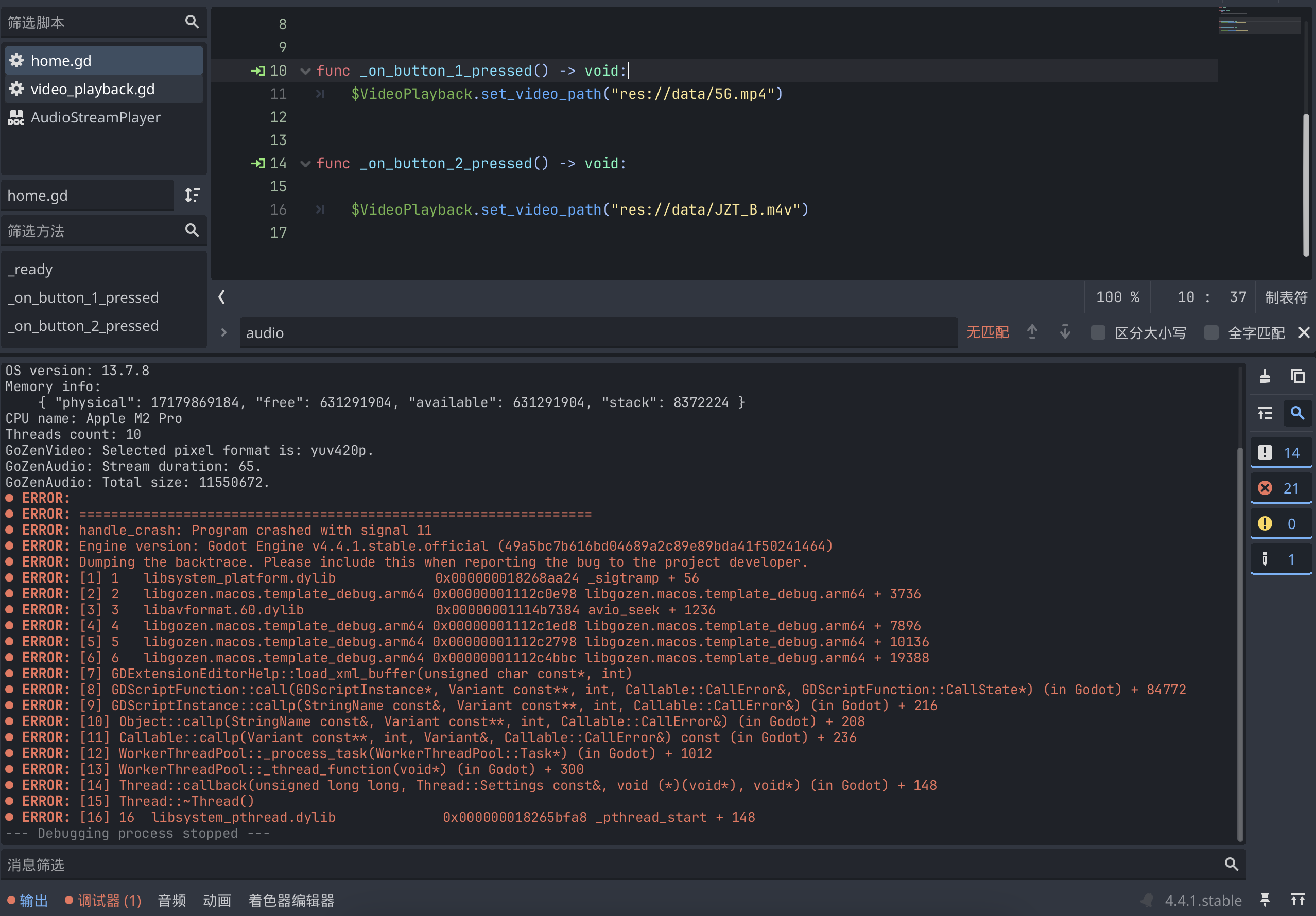 E 0:00:02:404 video_playback.gd:406 @ _open_audio(): Caller thread can't call this function in this node (/root). Use call_deferred() or call_thread_group() instead.