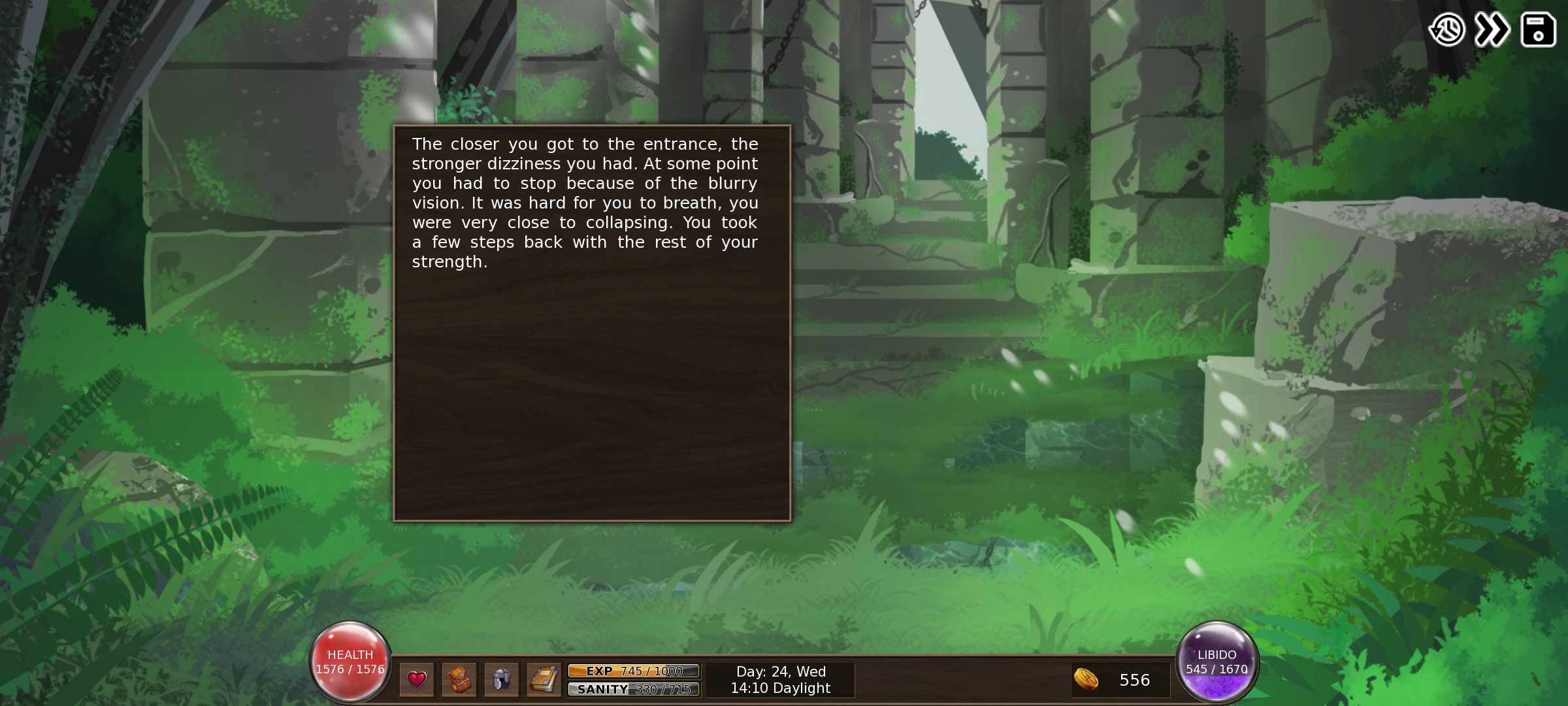 Anyway you cannot enter the shrine when your libido is too high. I keep forgetting about this even though I'm up to date, since I like to keep my libido halfway full.