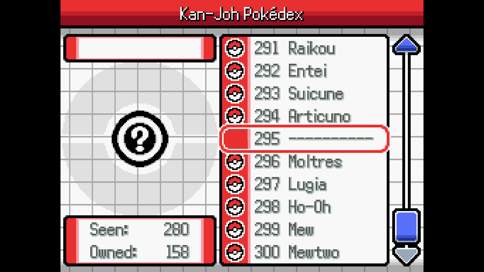 Ok, something else that I need to fix. Lost cave girl and Lostelle then go to Kindle Road. If you've seen Moltres twice, it's final appearance is there on Mt. Ember. Having the Rainbow/Silver Wings you can go to Whirl Islands (without the Whirlpool currently) and Ecruteak for them. Ho-Oh you will have to battle with the Kimono Girls. Mewtwo catchable after the battle on Mt. Ember, Mew in Cerulean Cave (post game), Articuno final spot is Route 28 and still need to add Zapdos last two spots. No Celebi in this game.