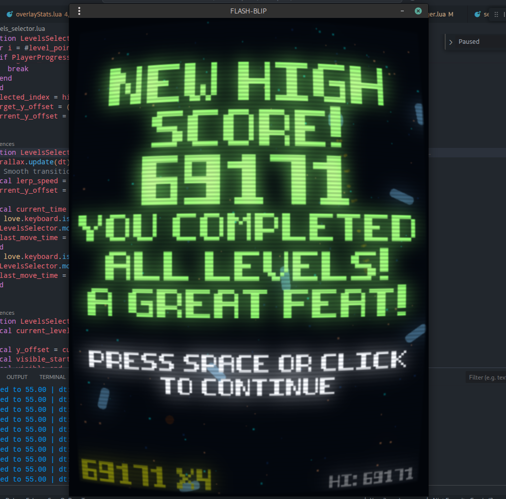 At high Arcade levels, the game starts with a higher difficulty multiplier, and at some point it becomes practically impossible to blip between two points because the speed is too high. In those cases, powerups are the only option, so the focus becomes keeping a powerup active as much as possible, without them it's very hard to land a blip.