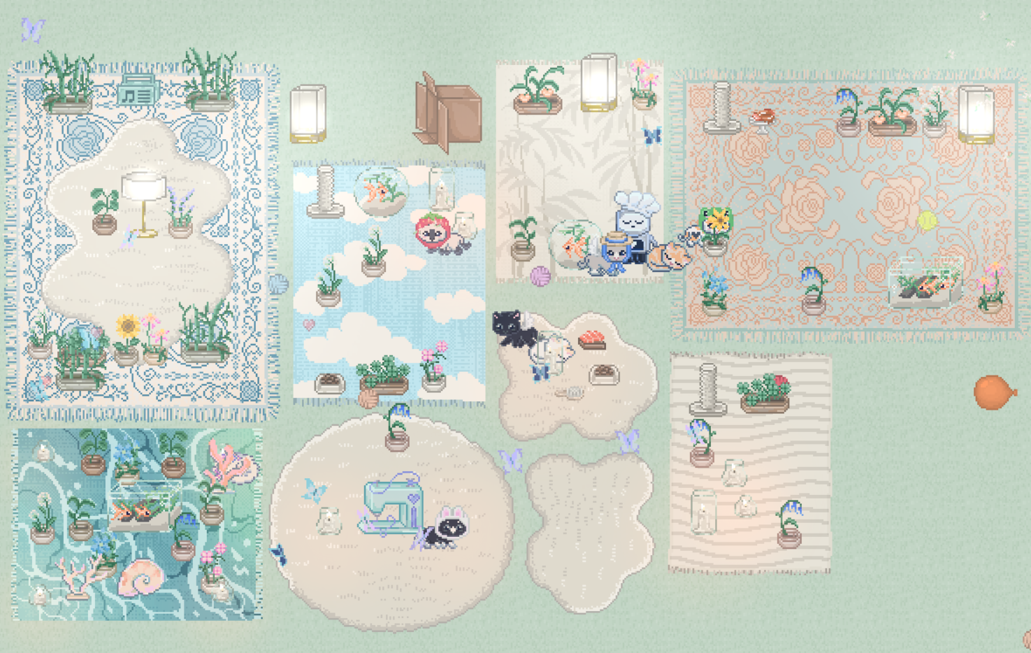Thank you for all the work you put into the game so far! I'm so greedy I already can't wait for more updates and items haha. (I'd love a cat bed) I wish there was a way to not move the rugs but still be able to move the items because I like rugs too much but now I keep accidentally moving them when I'm just trying to navigate around the screen haha. I love the game so far! And I love the little sounds they make <3