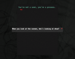 Добавлю личную трактовку) Последние диалоги ощущаются как “Я мыслю, значит я существую” - пусть и попытки не согласиться с системой о природе нашего бытия (о том, что мы являемся чем-то больше, чем просто сигналом) не были успешными, это не значит, что персонаж обязан и далее смотреть на ее всплывающие окна как приговор. Есть возможность (как персонажу, так и игроку) отойдти от экрана, посмотреть вокруг, и увидеть, что мир намного больше, чем возможно записать на компьютер или даже представить.