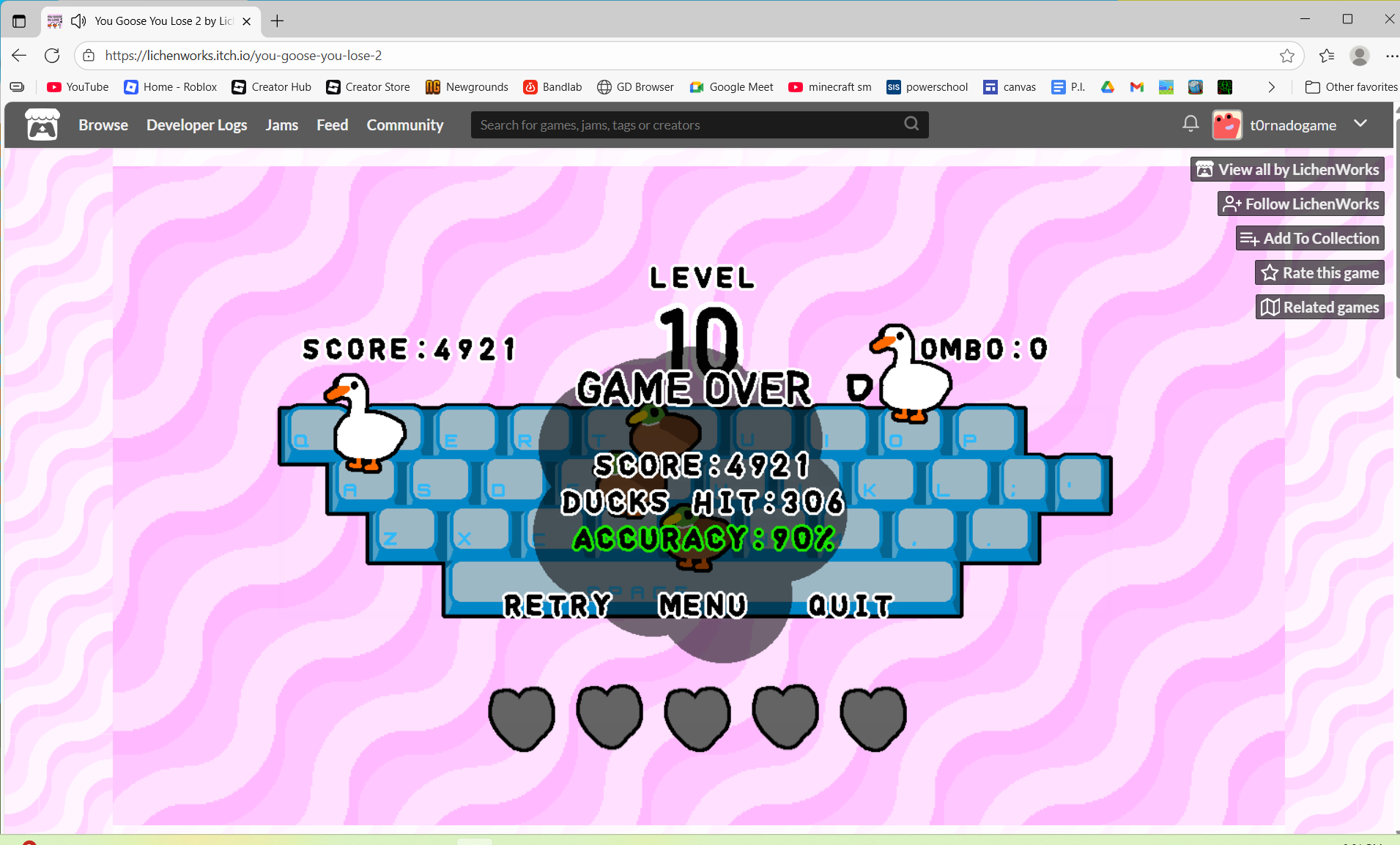 also i never hit a single goose that attempt (my first attempt on this game i swear) i think my brain is just programmed to not hit the geese