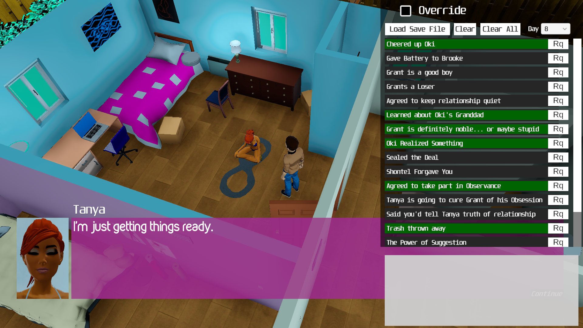 Hi, thanks for the feedback. Yes, I can see the issue with the event not triggering in the TB, thank you for bringing that to my attention. It's a bit hard for me to say what is happening with v1.1.0, the last stable build was v1.1.2, but either way, you can force the event using the Day Data Override functionality which you can read about here: https://thehandymanguide.rf.gd/DayDataOverride.htm