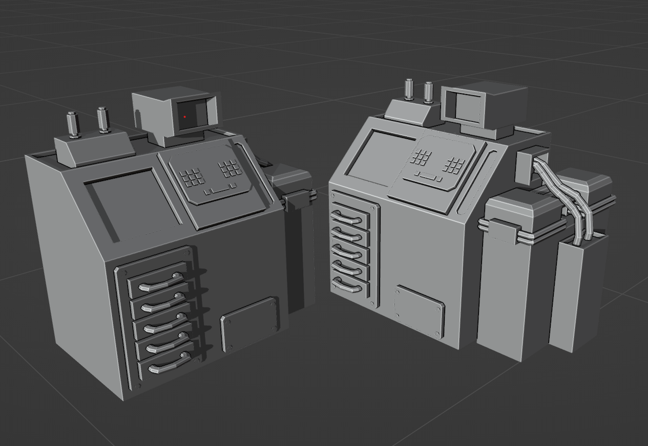 Your idea with workstations / terminals with screens, switches and keyboards is really good – that’s exactly the kind of asset that helps bring corridors to life and adds points of interest.