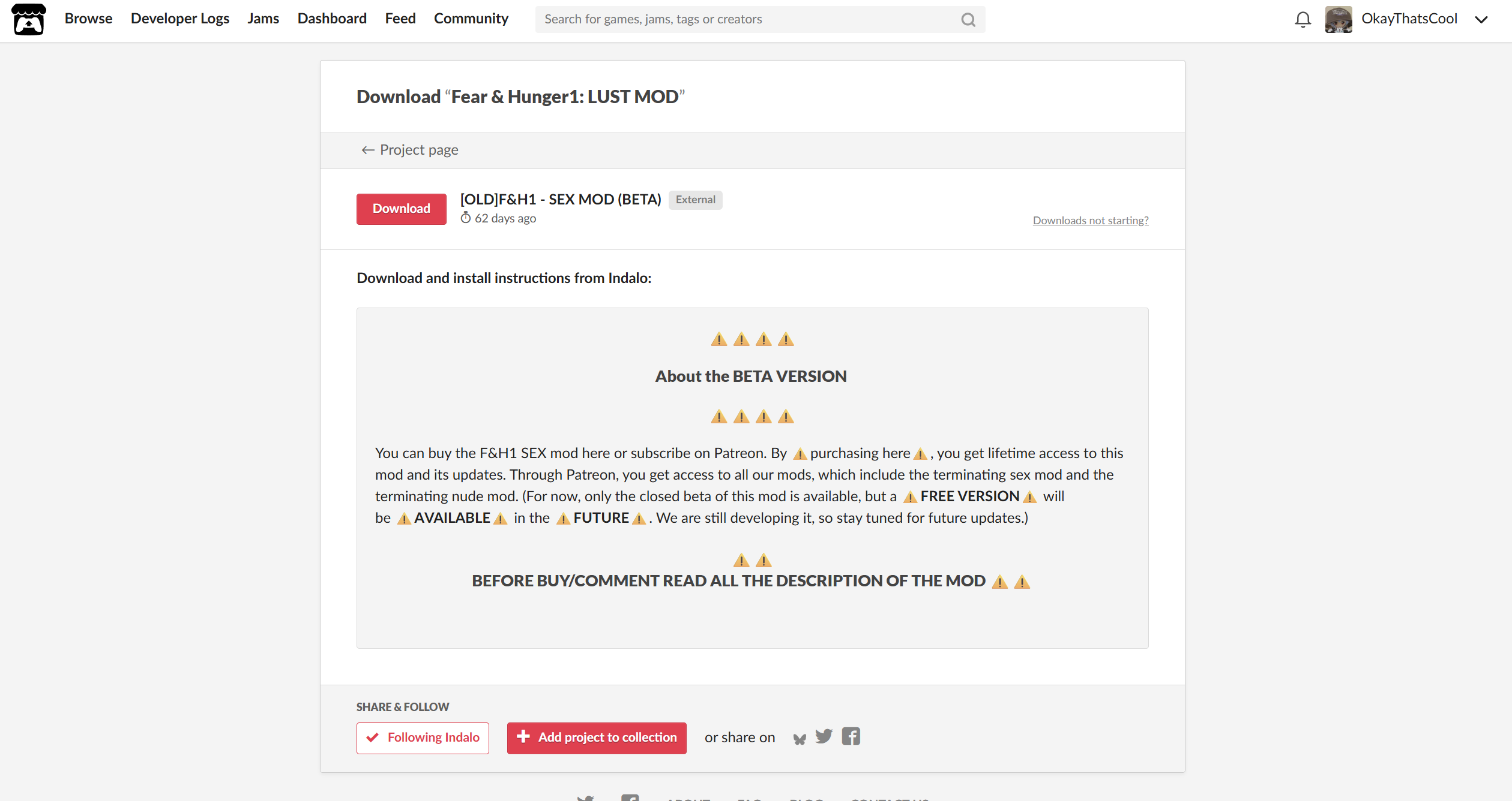 I sent you the direct link via email, a new link this time directly to the file. itch.io can be quite unstable and frustrating at times.