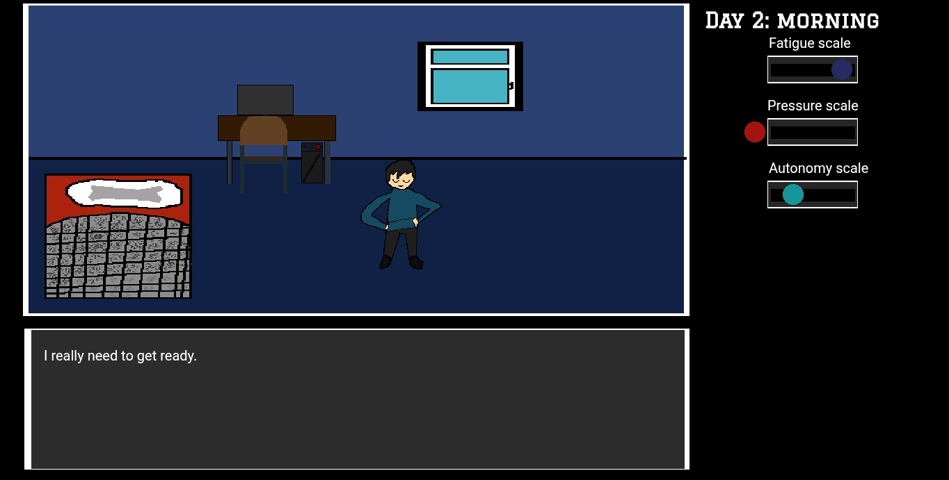 But you could improve more.. Making choices more important.. And make cutscene in end to make it more interesting.. Instead just white text.. And music.. While is not bad.. Could be more improved..maybe Making the music gose more drama the more player continue making choice.. Letting player know that they choice are matters
