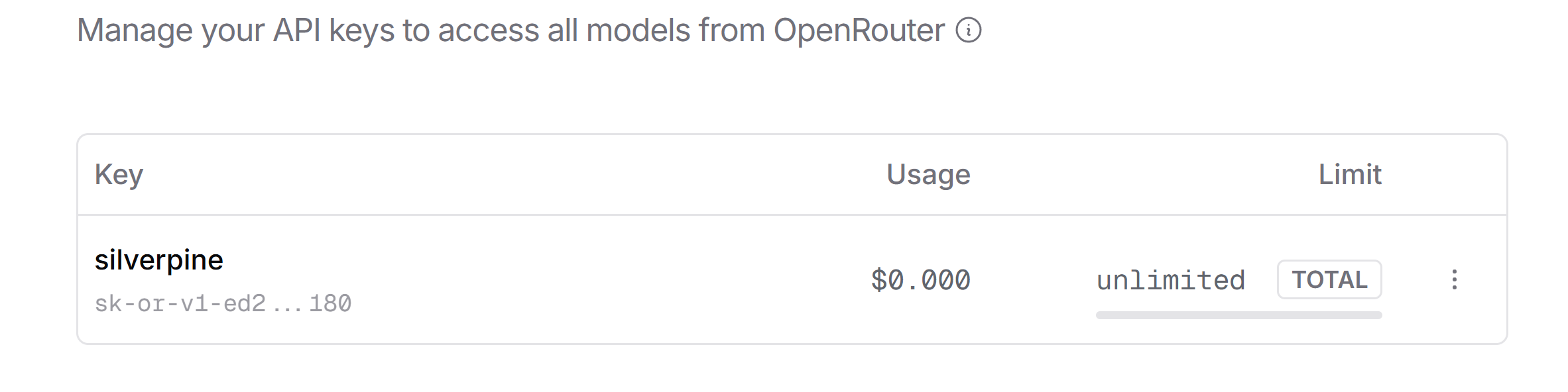 Just to confirm: Did you create it like this? Did you add credits to your OpenRouter account?