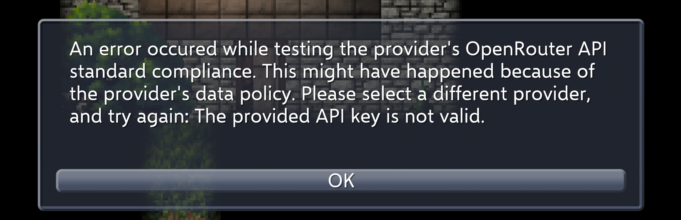 Double check if you didn't accidentally copy an extra character or hit a key after pasting it in. It should look something like "sk-or-v1-" and then a 64 character long hash.
