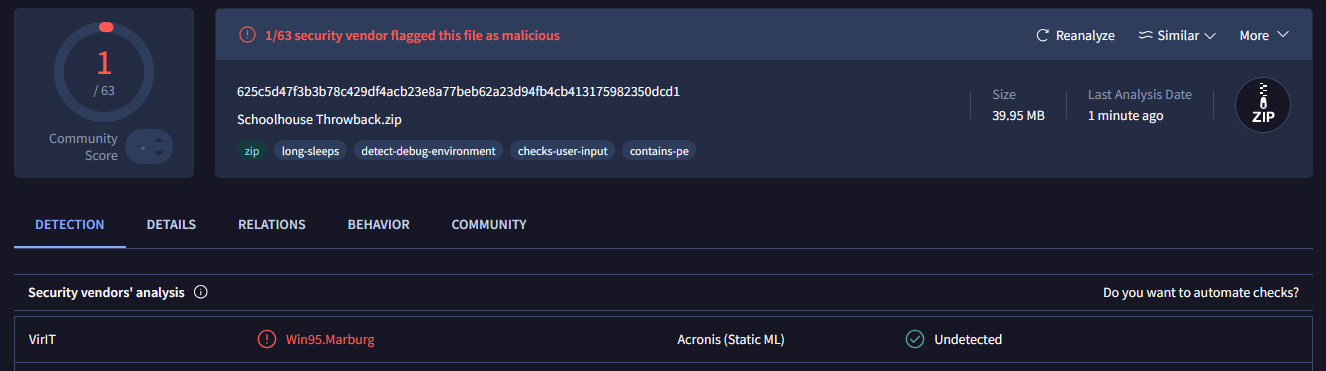 I imagine it's a false positive, but one of the checks on VirusTotal is flagging this as a virus: