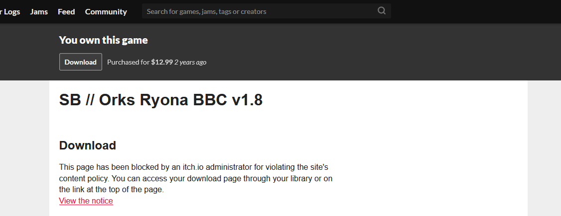 Here is an example of the main game page if the user owns the game, with the text "You own this game" and "Download" button at the top