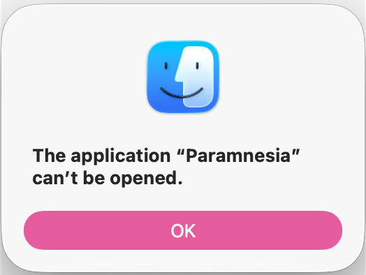 For some reason, I can't open the game. I get an error that says 'The application Paramnesia can't be opened' I'm on a Mac OS, not sure if this is a problem on my end / my computer? The game looks super cool though! Wish I could play it