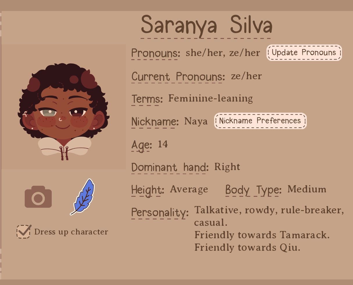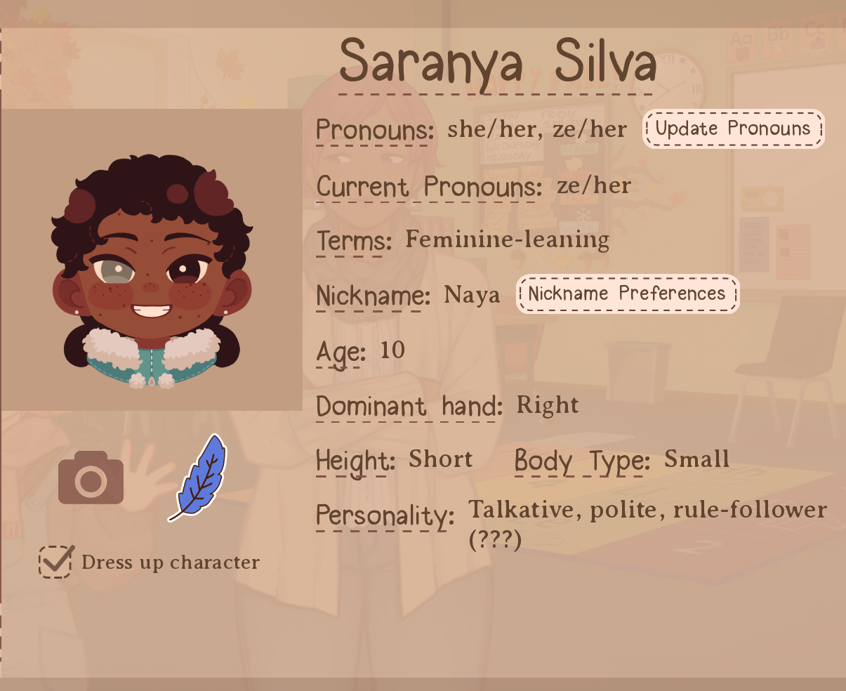 This is my oc Saranya "Naya" Silva!!! She's one of my six (as of now ;3) ocs in this game :333 i hope u likeyyy