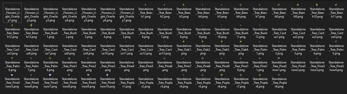 There are also duplicates in standalone versions of the trees alone and a few other elements to make it easier to drag and drop them into the scene and position them without having to bother with a spritesheet.