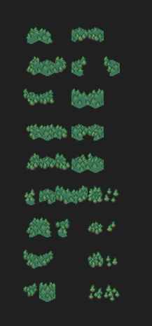 For tiles that overlap (such as trees), one line is skipped vertically between each tile.