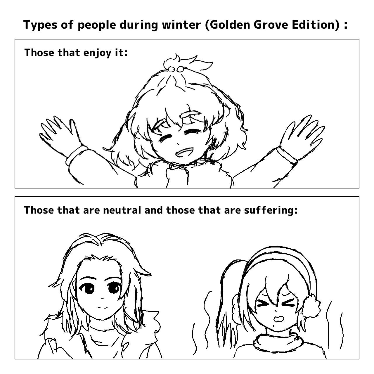 It's winter season! Living in a tropical climate myself, i can't imagine how I would survive the freezing temperatures! With that said, have this messy doodle of the cul de sac kids during the winter.
