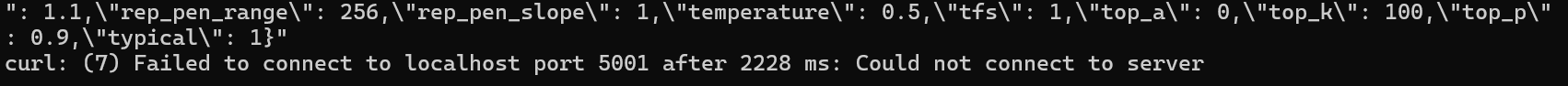 If the curl command fails, the issue of connecting to localhost is related to something else on your system, not the game itself. Perhaps there's another program already running on port 5001.