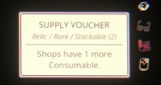 (cursor is over the eye, showing description for the Supply Voucher, the third relic from the top.)