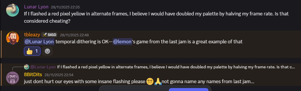 I feel as though this kind of palette trickery goes against the spirit of the jam. On 120hz monitor there really is no discernable difference between this and a multicolour palette. Disregarding that, unfortunately job simulator games are not for me.
