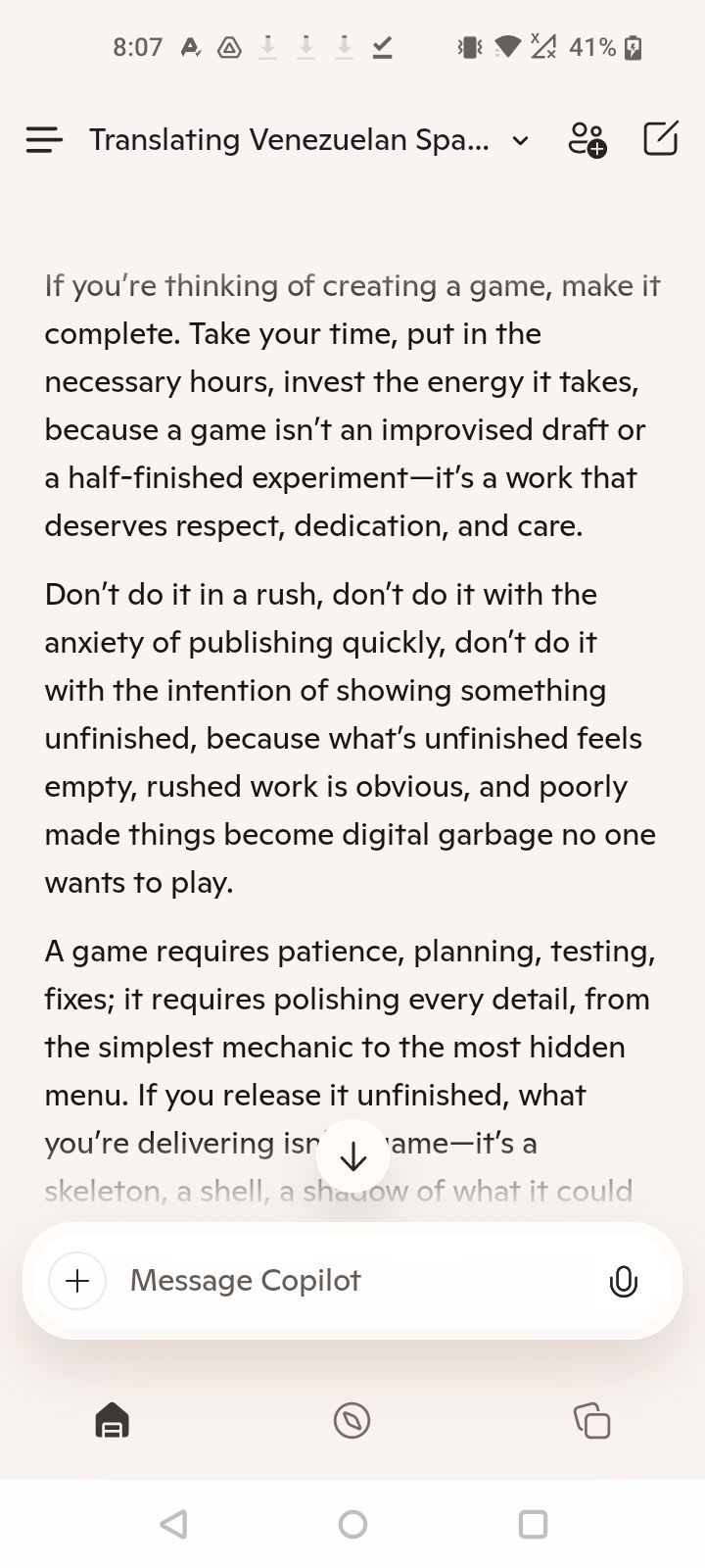 I don't speak spanish and Google translate crashed so I used copilot to help me understand what you were saying