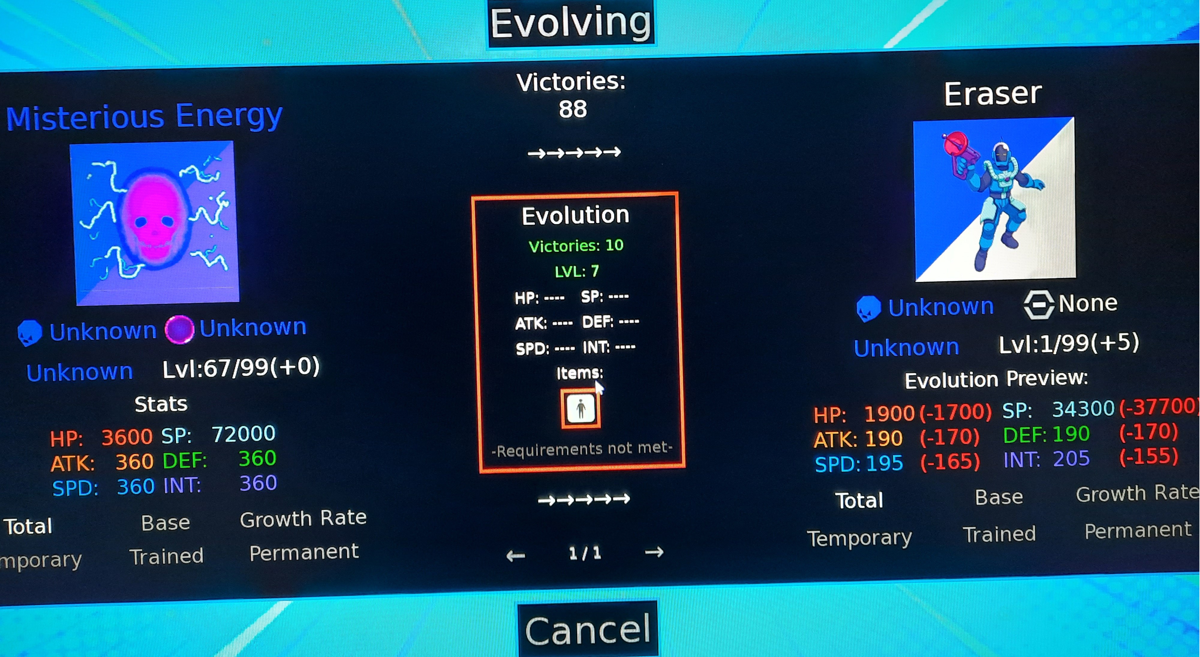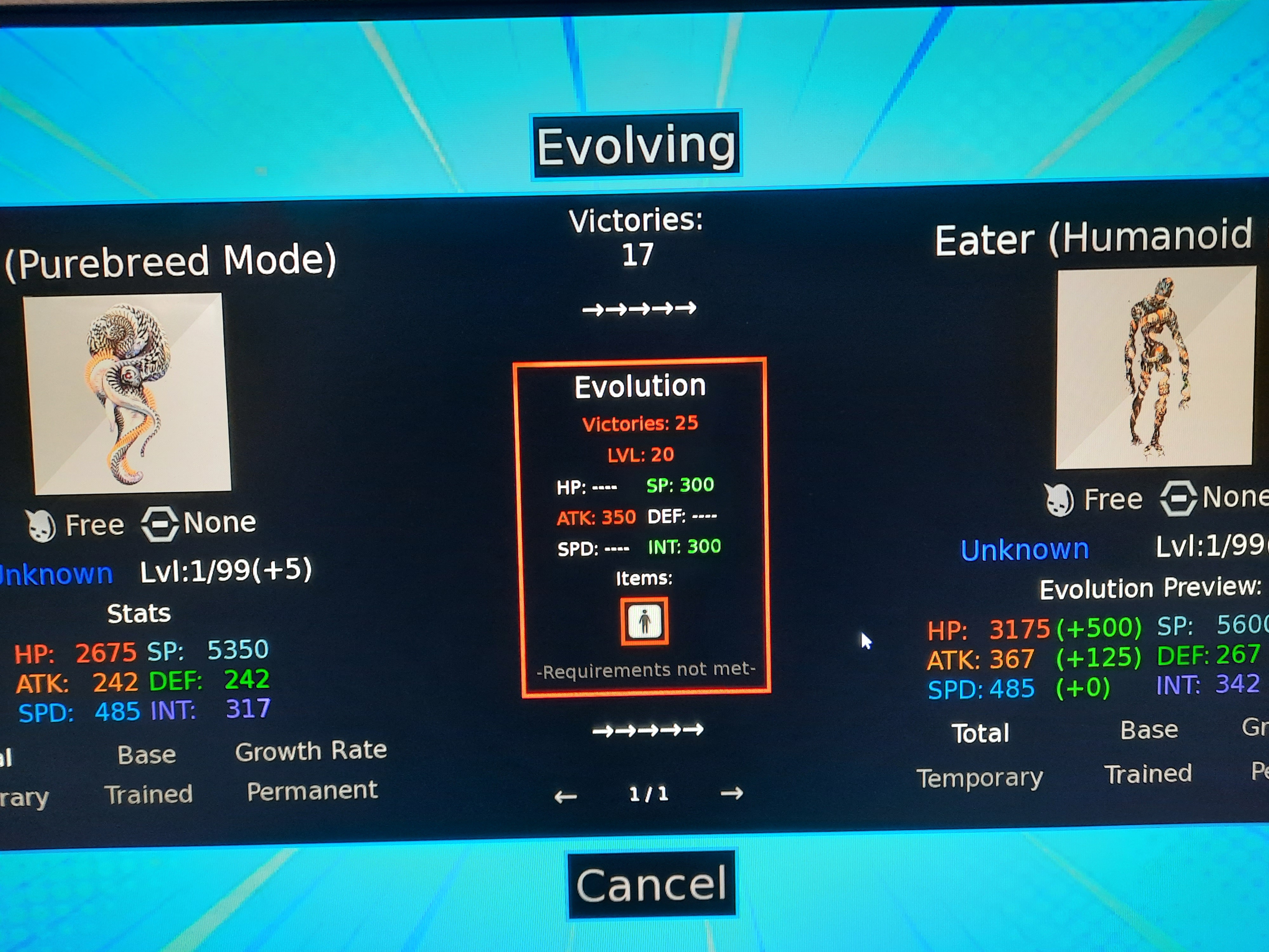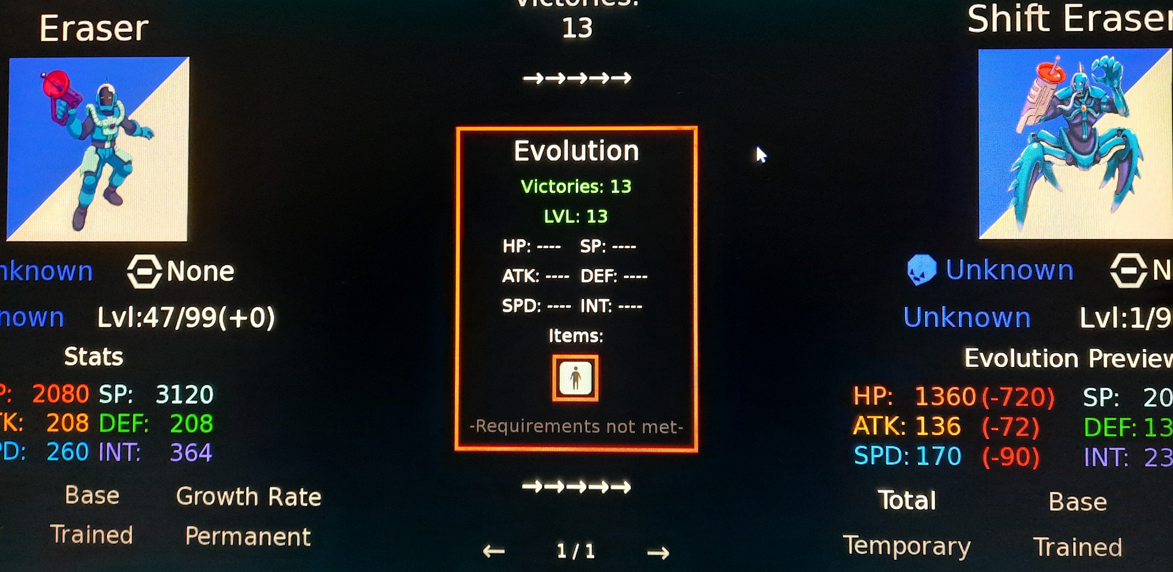 <img src="https://img.itch.zone/aW1nLzI0NzI4MTY4LmpwZw==/original/nqXN53.jpg"><img src="https://img.itch.zone/aW1nLzI0NzI4MTY5LmpwZw==/original/1gItBJ.jpg"><img src="https://img.itch.zone/aW1nLzI0NzI4MTcwLmpwZw==/original/F1E2p%2F.jpg">I've already had a few problems. Is it possible to remove the "Digimon can no longer level up" priority from the tooltips, or to be able to change it in the options? Then I looked at each Digimon, or rather what they drop, in the Digimon Database, and there's an item I can't find that's used to evolve some of them. It looks like a little figure inside a square. Then Kuwagamon grows and evolves into itself, a bit like a form change, but identical. Also, some X-Antibody Digimon no longer de-digivolve into their normal form. Finally, I found that Ragna Lordmon cannot fuse; the two Digimon required for this are considered nonexistent, and their icons during evolution are blurred. And I'd like to add that I apologize for the translation; as English isn't my native language, I used an online translator.<img src="<a href="<a href="https://img.itch.zone/aW1nLzI0NzI4MTMyLmpwZw==/original/fdEDze.jpg">https://img.itch.zone/aW1nLzI0NzI4MTMyLmpwZw==/original/fdEDze.jpg</a>"><a href="https://img.itch.zone/aW1nLzI0NzI4MTMyLmpwZw==/original/fdEDze.jpg</a>">https://img.itch.zone/aW1nLzI0NzI4MTMyLmpwZw==/original/fdEDze.jpg</a></a>"><img src="<a href="<a href="https://img.itch.zone/aW1nLzI0NzI4MTM1LmpwZw==/original/zopXEf.jpg">https://img.itch.zone/aW1nLzI0NzI4MTM1LmpwZw==/original/zopXEf.jpg</a>"><a href="https://img.itch.zone/aW1nLzI0NzI4MTM1LmpwZw==/original/zopXEf.jpg</a>">https://img.itch.zone/aW1nLzI0NzI4MTM1LmpwZw==/original/zopXEf.jpg</a></a>"><img src="<a href="<a href="https://img.itch.zone/aW1nLzI0NzI4MTM3LmpwZw==/original/7uuMUx.jpg">https://img.itch.zone/aW1nLzI0NzI4MTM3LmpwZw==/original/7uuMUx.jpg</a>"><a href="https://img.itch.zone/aW1nLzI0NzI4MTM3LmpwZw==/original/7uuMUx.jpg</a>">https://img.itch.zone/aW1nLzI0NzI4MTM3LmpwZw==/original/7uuMUx.jpg</a></a>">